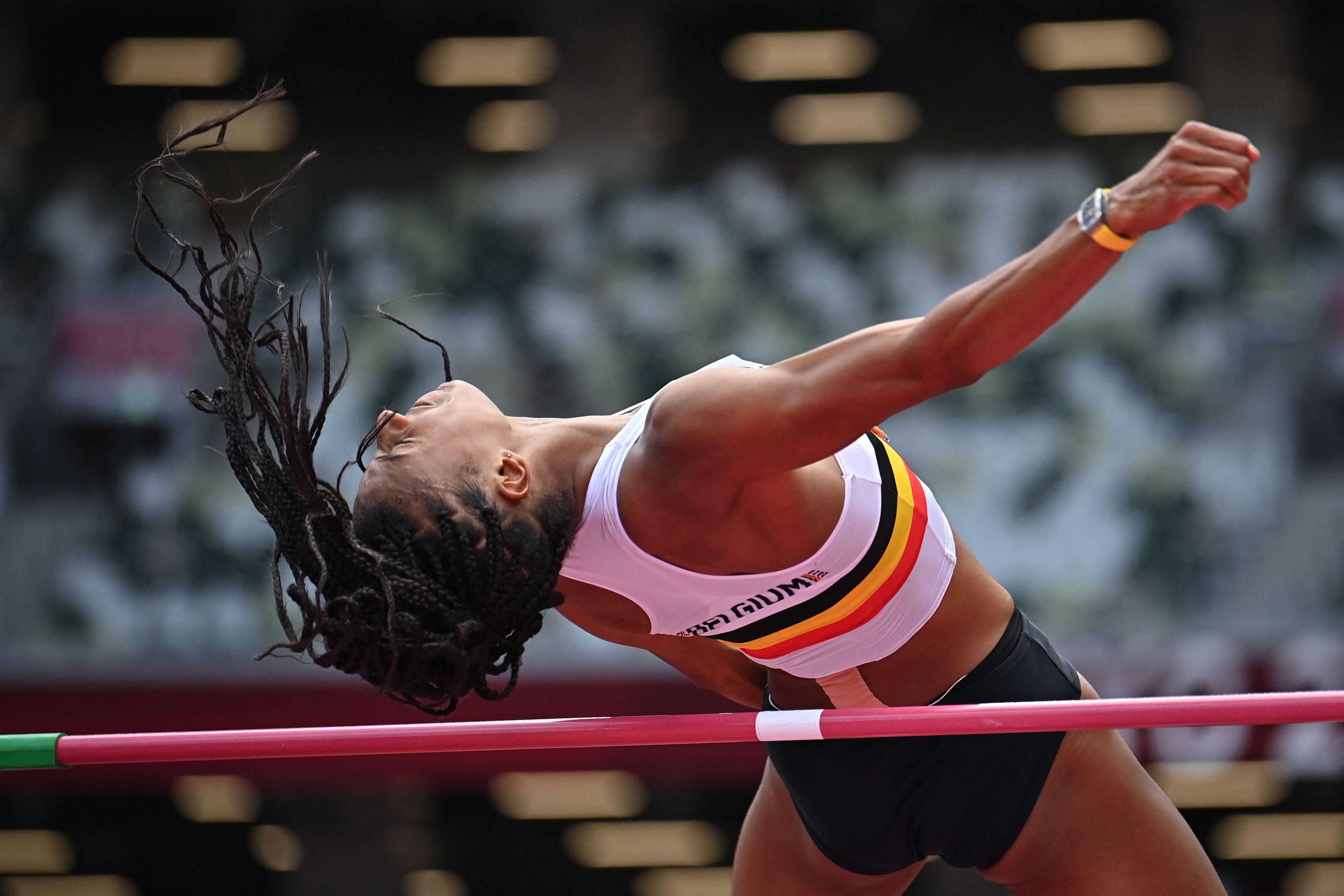 Belgium's Nafissatou Thiam competes in the women's heptathlon high jump at the Olympic Stadium in Tokyo on Aug. 4. Photo: Ben Stansall/AFP via Getty Images