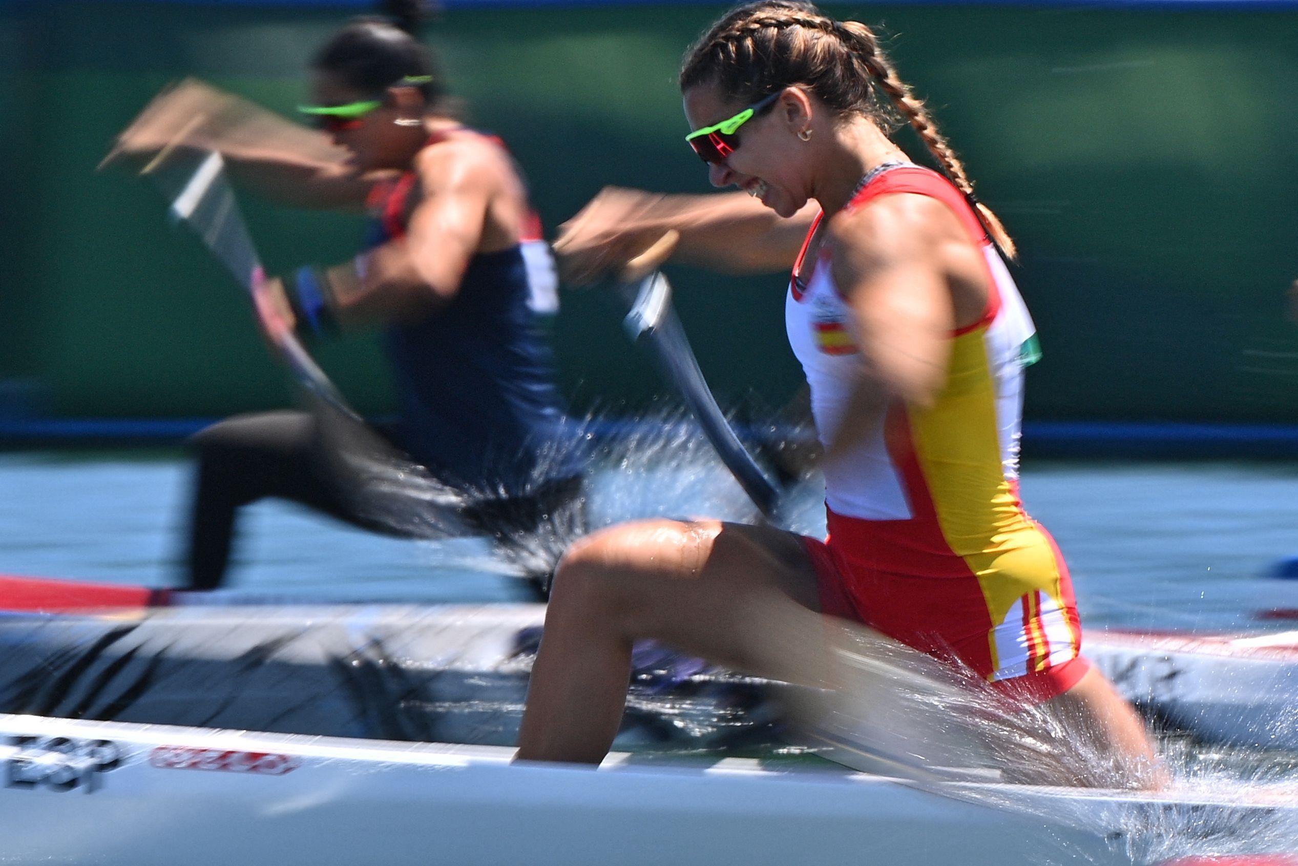 Spain's Anita Jacome competes in a quarterfinal for the women's canoe single 200m event at Sea Forest Waterway in Tokyo on Aug. 4. Photo: Philip Fong/AFP via Getty Images