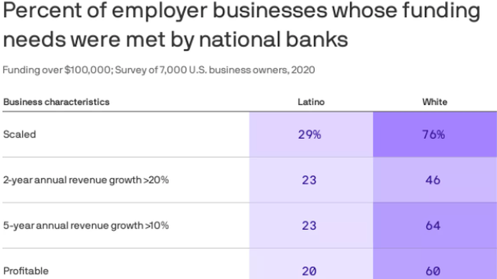 - On average even before the pandemic, only 51% of Latino-owned businesses were approved for loans, compared to 77% of white non-Hispanic-owned businesses that did, according to a Stanford study.