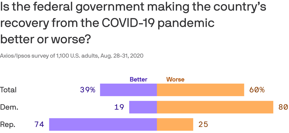 Most Americans think the federal government is making the coronavirus pandemic worse, according to the latest installment of the Axios-Ipsos Coronavirus Index.