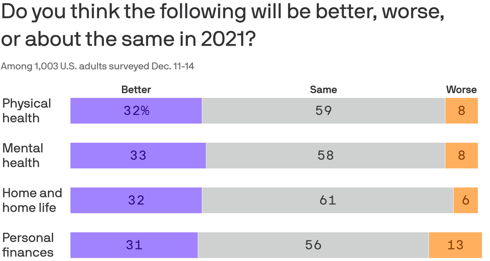 By the numbers: Roughly a third of poll respondents in Wave 34 of our weekly national poll said they expected 2021 to be better on several levels, including their physical health, their mental health, their emotional well-being, their home life and their personal finances.