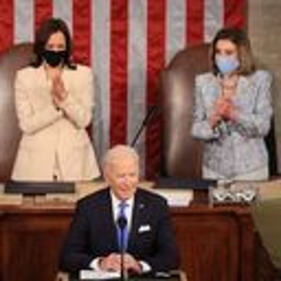President Biden opened his first joint address to Congress lauding the momentous nature of Vice President Kamala Harris and House Speaker Nancy Pelosi's presence behind him.