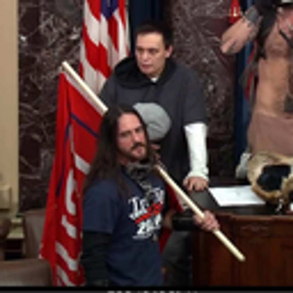 - He said it was "chilling" that the pro-Trump mob was able to disrupt the certification of President Biden's election victory, and that Hodgkins' waving of a Trump flag on the Senate floor symbolized his loyalty to a single individual over the nation.