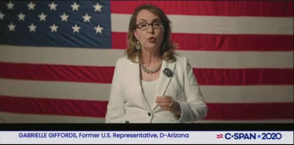 - "We can protect our families, our future. We can vote. We can be on the right side of history. We must elect Joe Biden. He was there for me, he'll be there for you too," Giffords said.