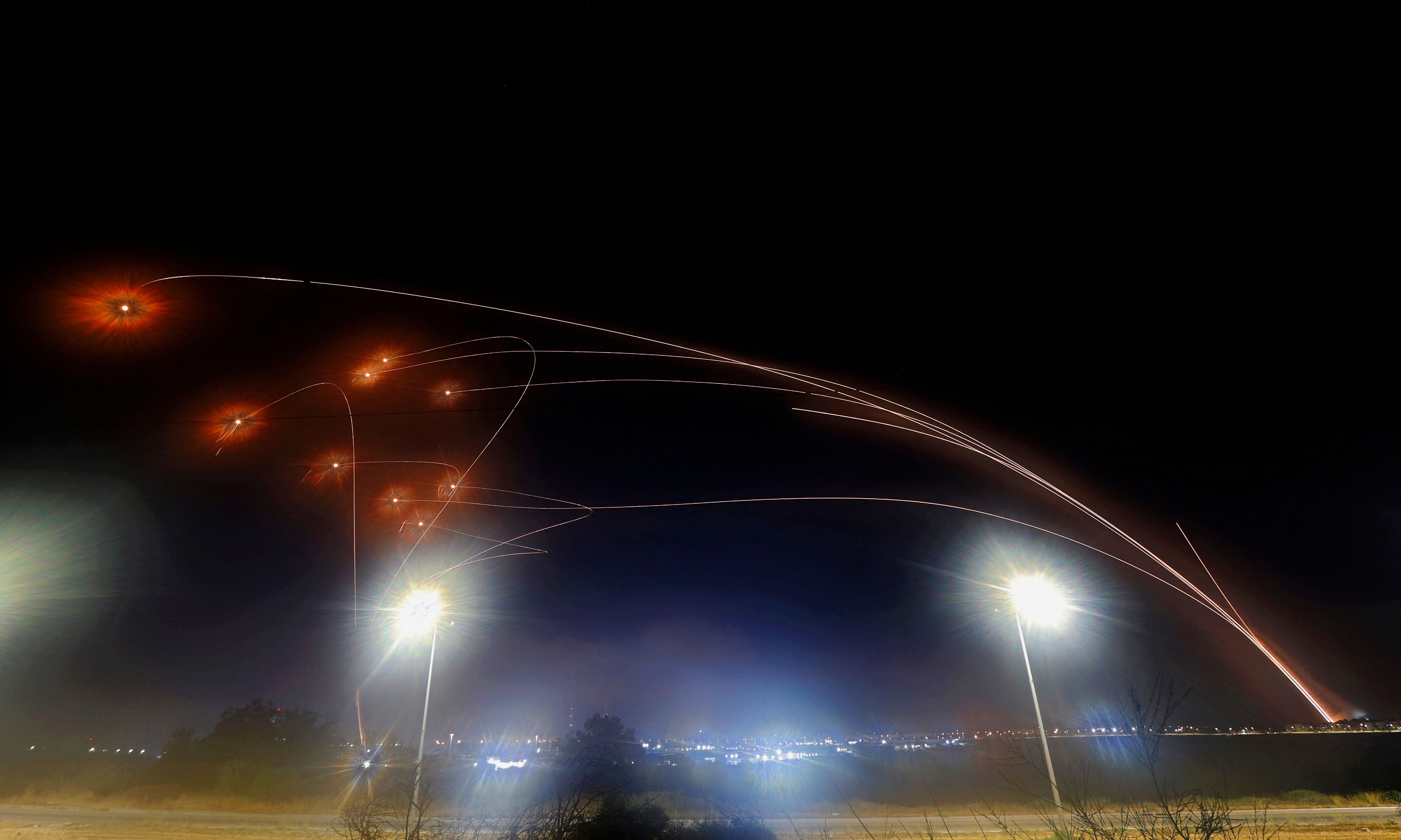 Israel's Iron Dome aerial defense system intercepts rockets above the southern Israeli city of Ashkelon, after they were launched from the Gaza Strip, controlled by Hamas, on May 10. Photo: Jack Guez/AFP via Getty Images