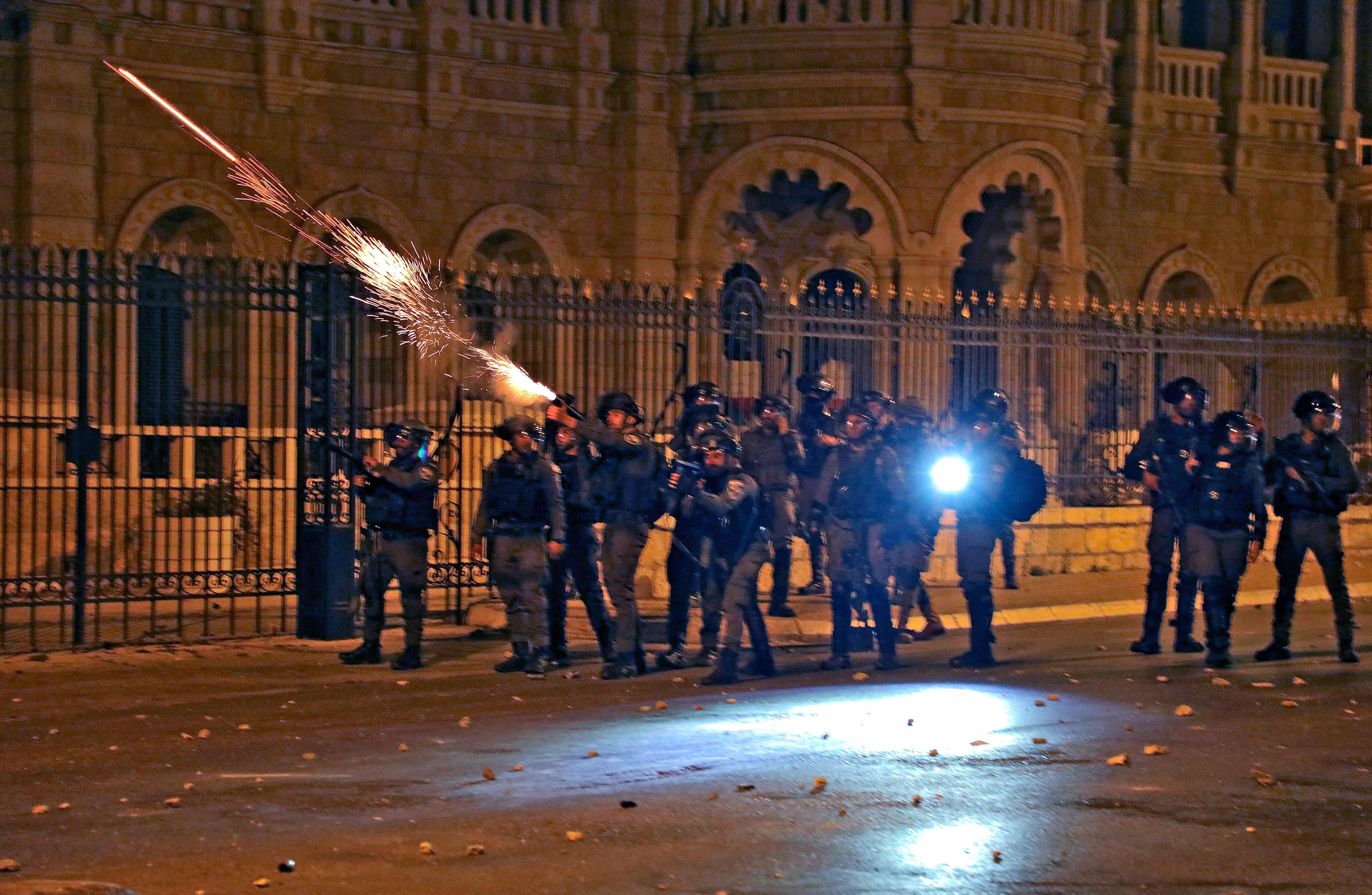 Israeli forces intervene during a Palestinian protest at Masjid al-Aqsa, in Nablus, West Bank early on May 11. Photo: Mamoun Wazwaz/Anadolu Agency via Getty Images