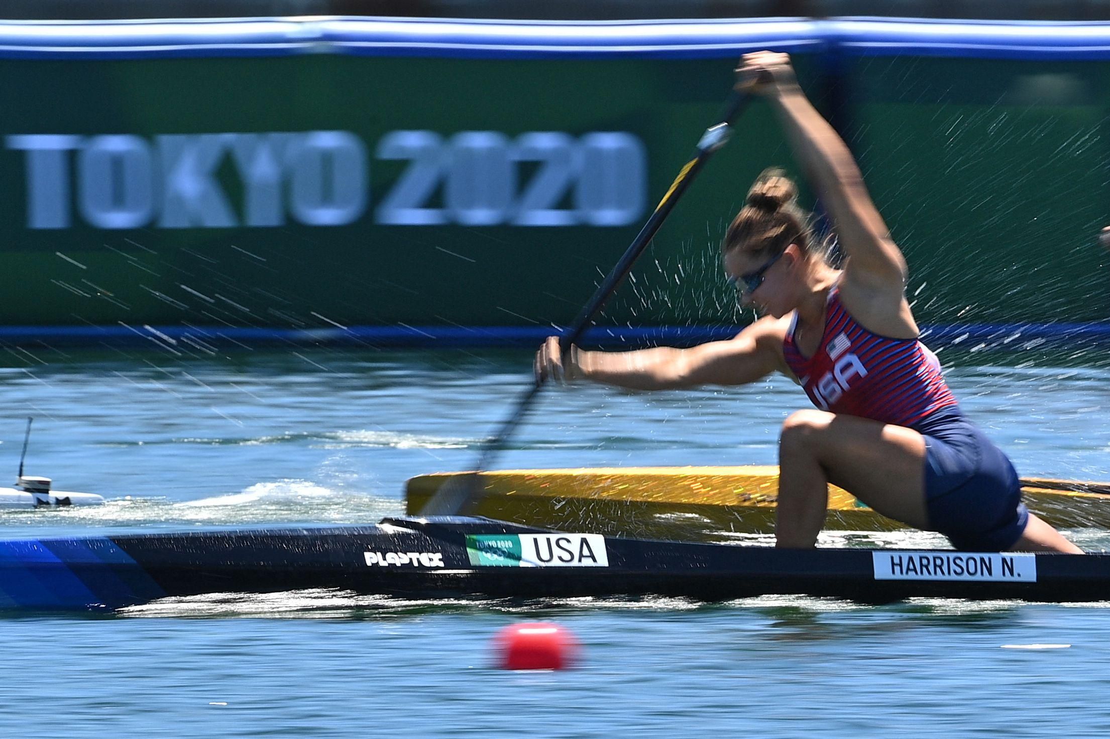 American Nevin Harrison competes to win the first Olympic women's canoe single 200m final at Sea Forest Waterway in Tokyo on Aug. 5. Photo: Philip Fong/AFP via Getty Images