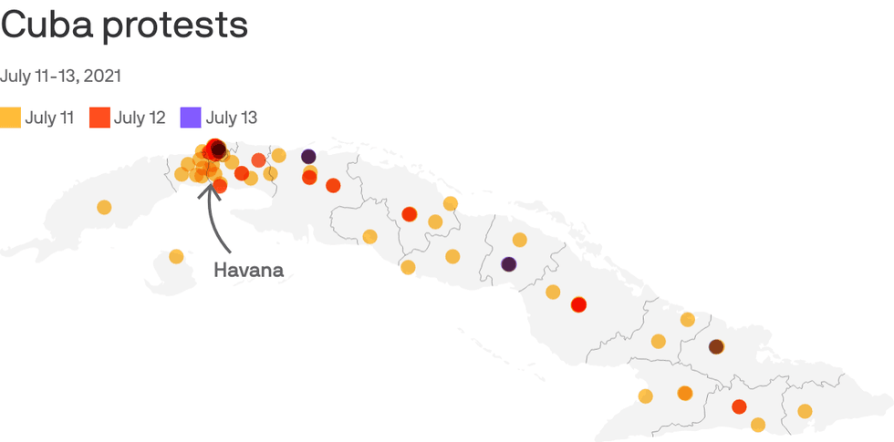Why it matters: Sunday’s seemingly spontaneous mobilizations across the island were something unseen in 60 years of castrista rule.
