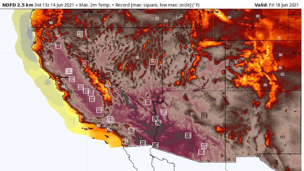 Why it matters: The heat will build in a region that is experiencing a record drought, leading to dangerous fire weather conditions, high power demands, and causing water supplies to dwindle further. The heat itself could prove deadly.