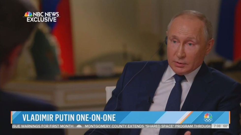 In an exclusive interview with NBC's "Today," Russian President Vladimir Putin denied that Russia is waging cyber warfare against the United States and refused to guarantee opposition leader Alexei Navalny — whose name he would not say — will leave prison alive.