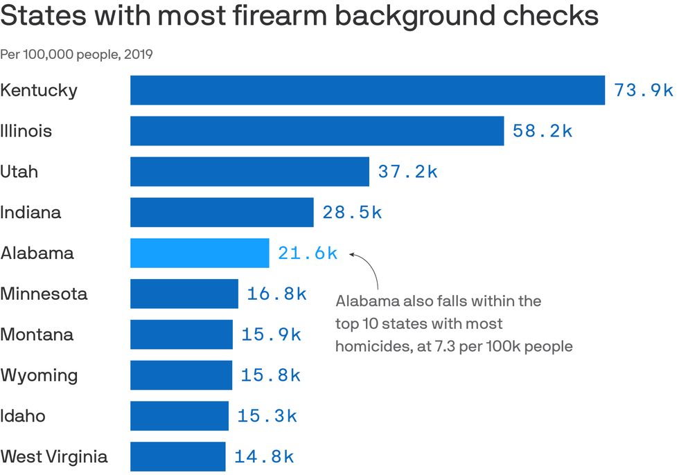 - Kentucky and Illinois were the top two for most firearm background checks in 2020, both numerically and per capita. Those checks are one of the best metrics for measuring gun buying in the U.S.
