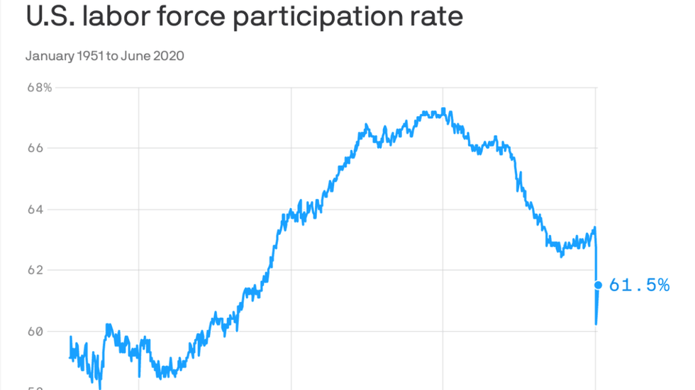 By the numbers: The U.S. labor force participation rate saw its largest decline ever from February to March and has not recovered much of that ground, even as the unemployment rate has declined.
