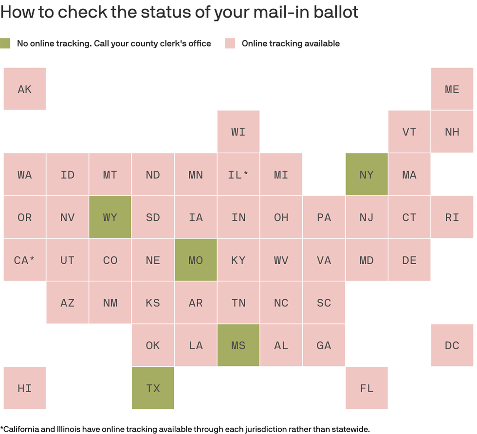 Between the lines: Voters in Texas, Missouri, Mississippi, Alabama, Louisiana and Indiana face some of the biggest obstacles because of the rules in those states, National Vote At Home Institute CEO Amber McReynolds told Axios.