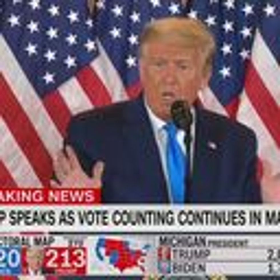 What he said: "This is a fraud on the American public. This is an embarrassment to our country. We were getting ready to win this election. Frankly, we did win this election," Trump falsely claimed.