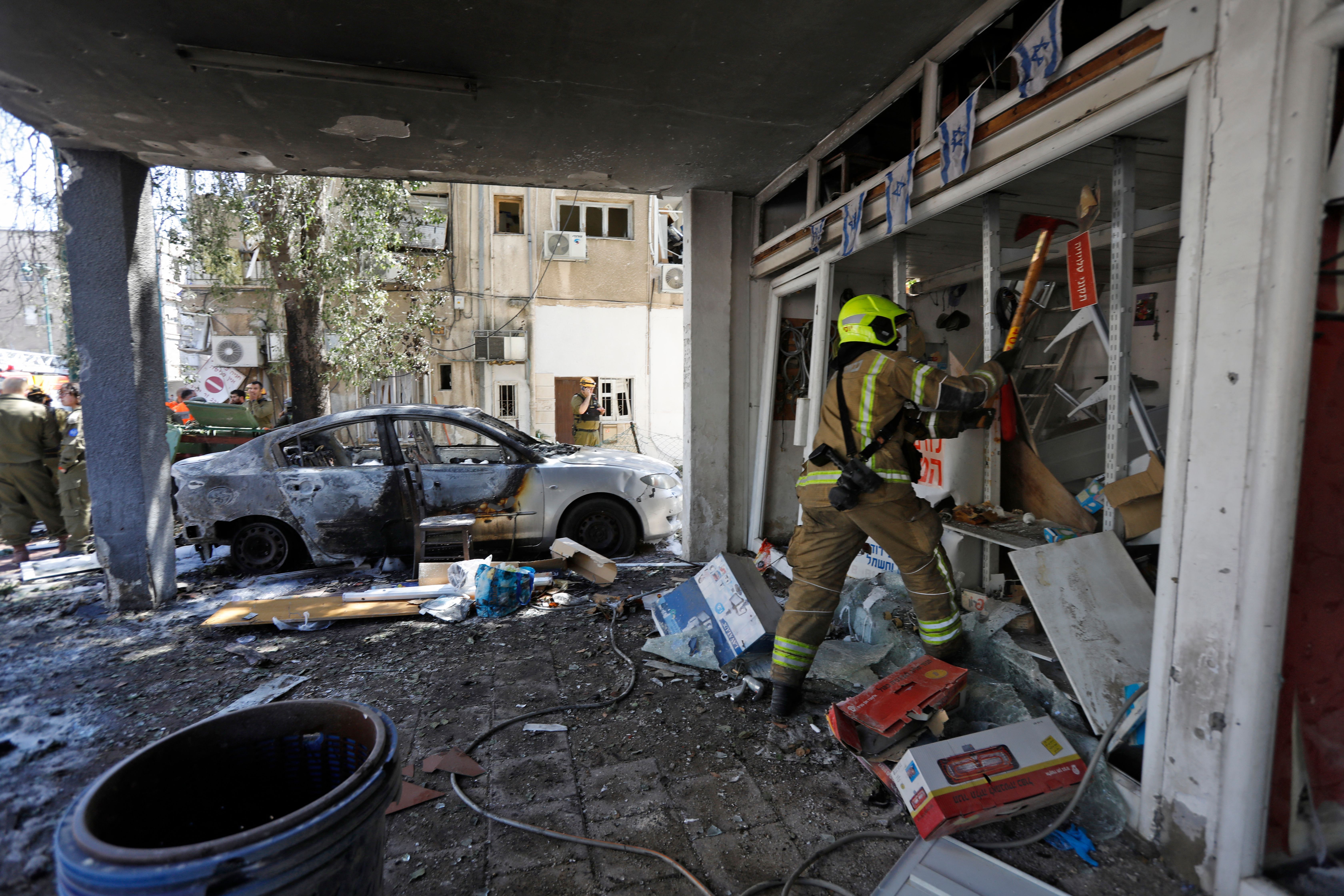 A member of the Israeli emergency services works on a site hit by a rocket in Ramat Gan, following the launching of rockets from the Gaza. Photo: Gil Cohen-Magen/AFP via Getty Images