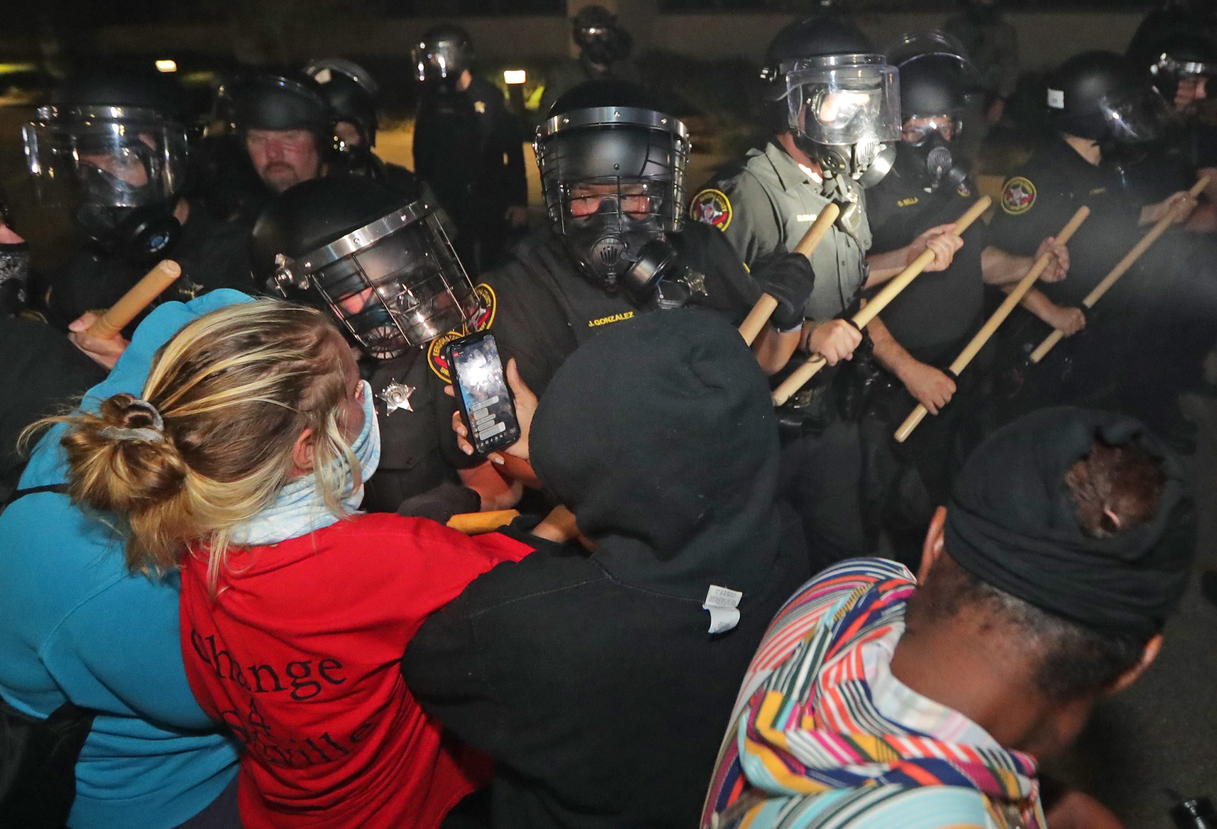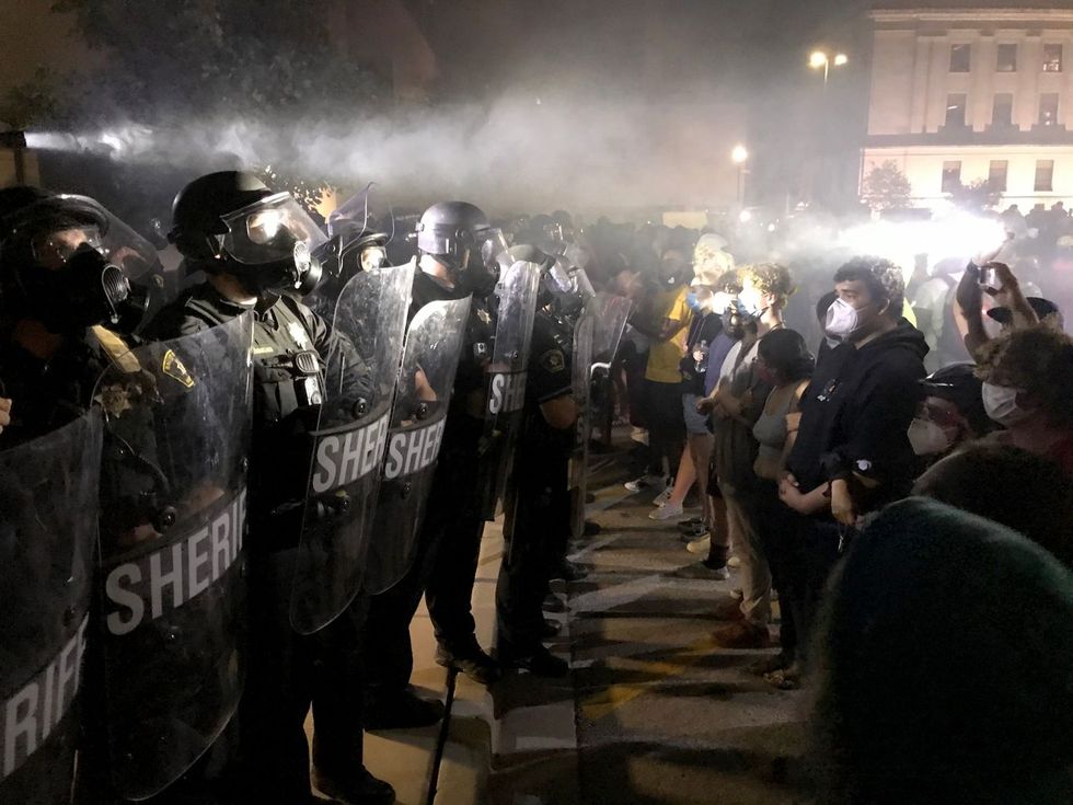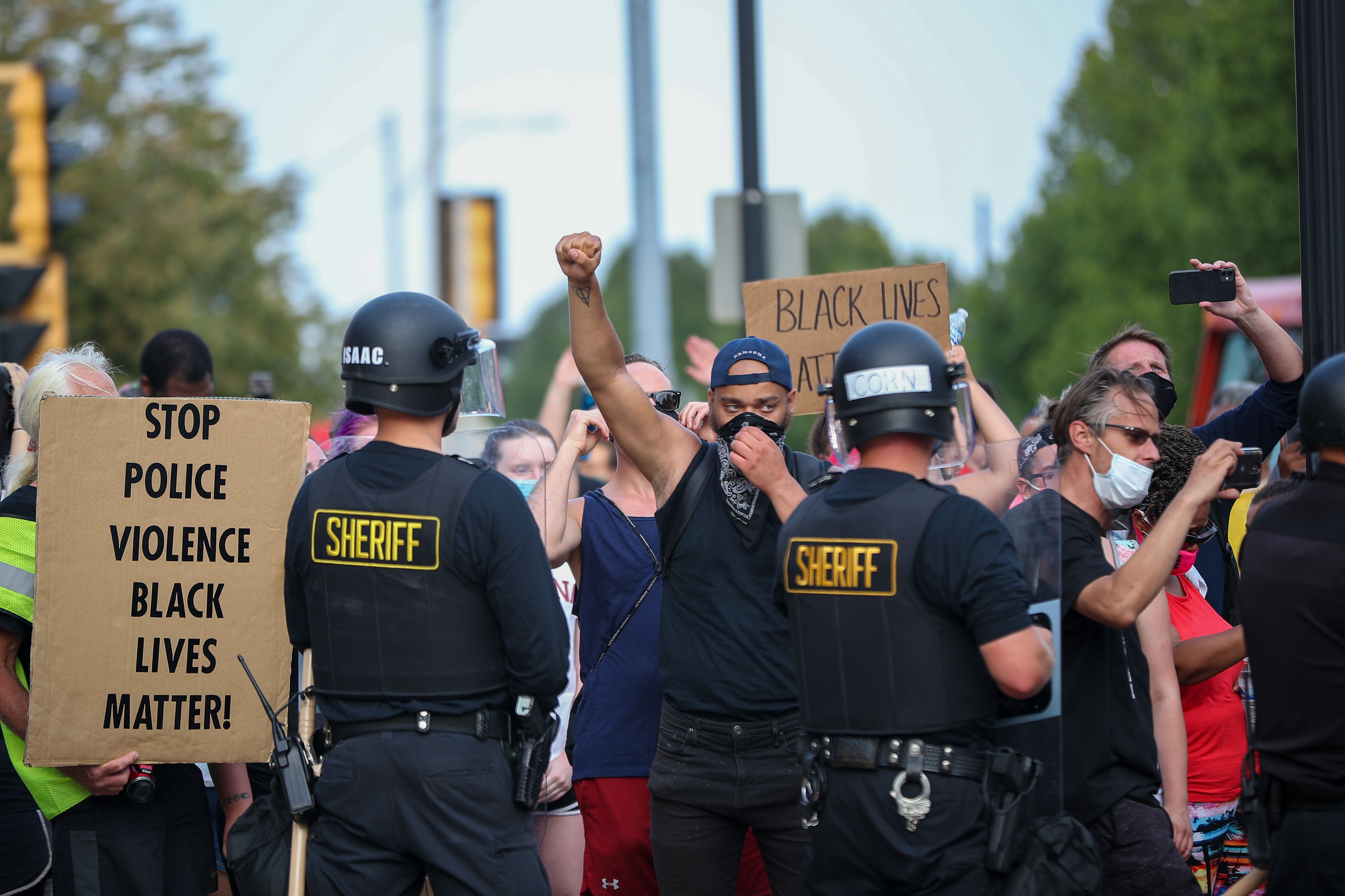 Law enforcement deployed tear gas in Kenosha, Wisconsin, late Monday as officers clashed with demonstrators who defied a curfew to protest the police shooting of Jacob Blake, a 29-year-old Black man, in the city.